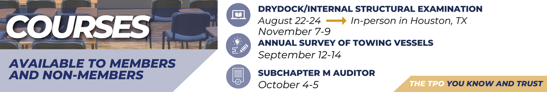 This course will give surveyors who plan to conduct drydock and internal structural examinations of inspected towing vessels for compliance with Subchapter M the tools, skills, and knowledge to complete these examinations.