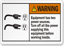 Federal regulations require that any electrical panel or enclosure containing more than one power source be clearly labeled with a warning sign. This sign must: