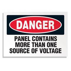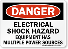 Federal regulations require that any electrical panel or enclosure containing more than one power source be clearly labeled with a warning sign. This sign must: